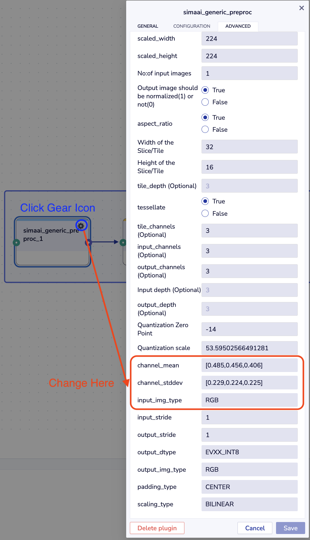 • Then, configure the preprocessing plugin of your resnet_50 model to properly process inputs from simaaisrc: