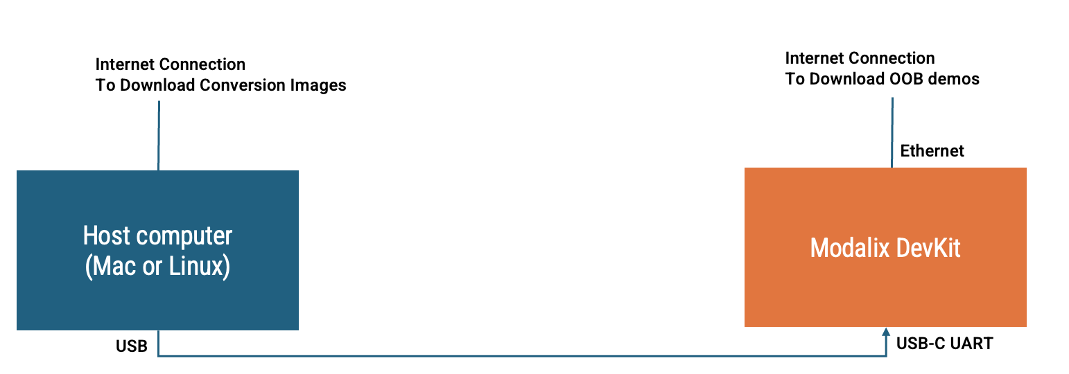 Power-cycle the Modalix DevKit while it is connected to the host via the serial console. From the DevKit serial console, interrupt the boot process to enter the U-Boot shell.
