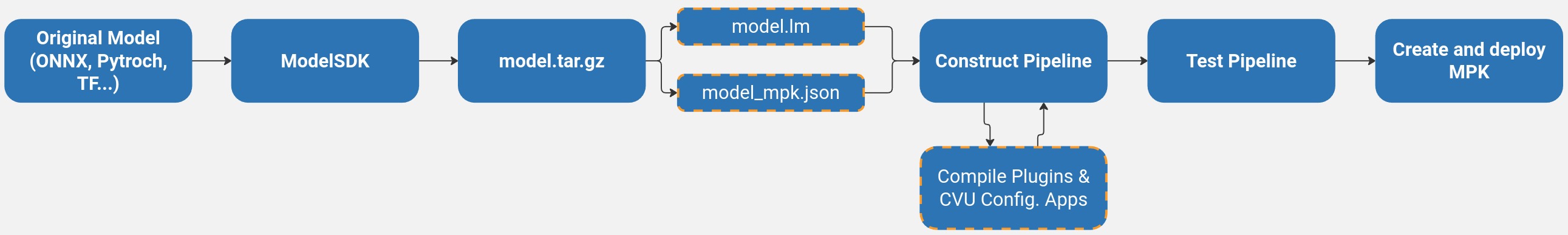 tar.gzwhich contains the compiled model (model.lm) and the configuration meta-data for the model (model_mpk.json). These files will be used when developing the application pipeline to configure the runtime.Construct the GStreamer application/pipeline using compiled model resources and writing configuration files for various SiMa.ai GStreamer plugins (optional).