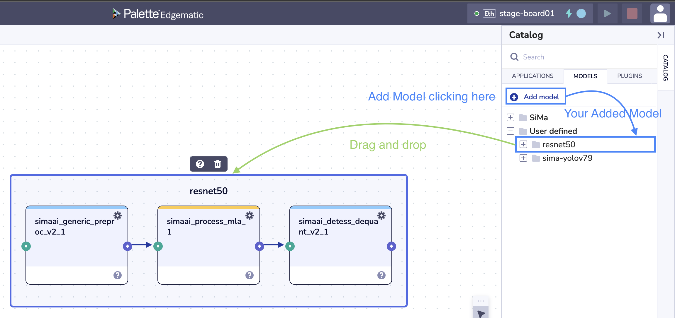 GStreamer pipeline is the core framework for integrating models, data streams, and SiMa hardware. Let’s start with a ResNet50 classification pipeline example to learn how to configure components and establish a workflow for building EdgeMatic applications.