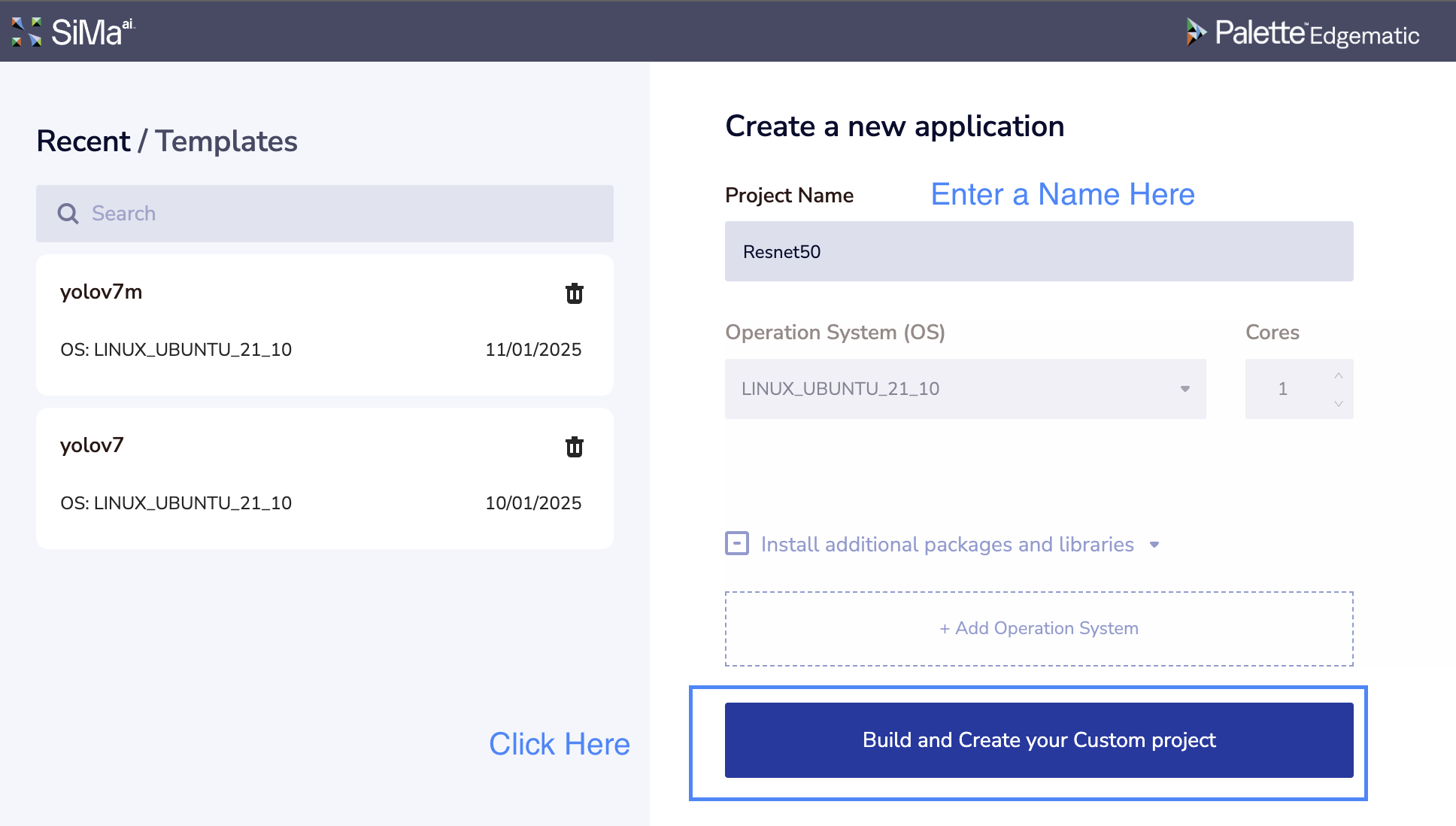 To get started, create a new Project named “ResNet50”: