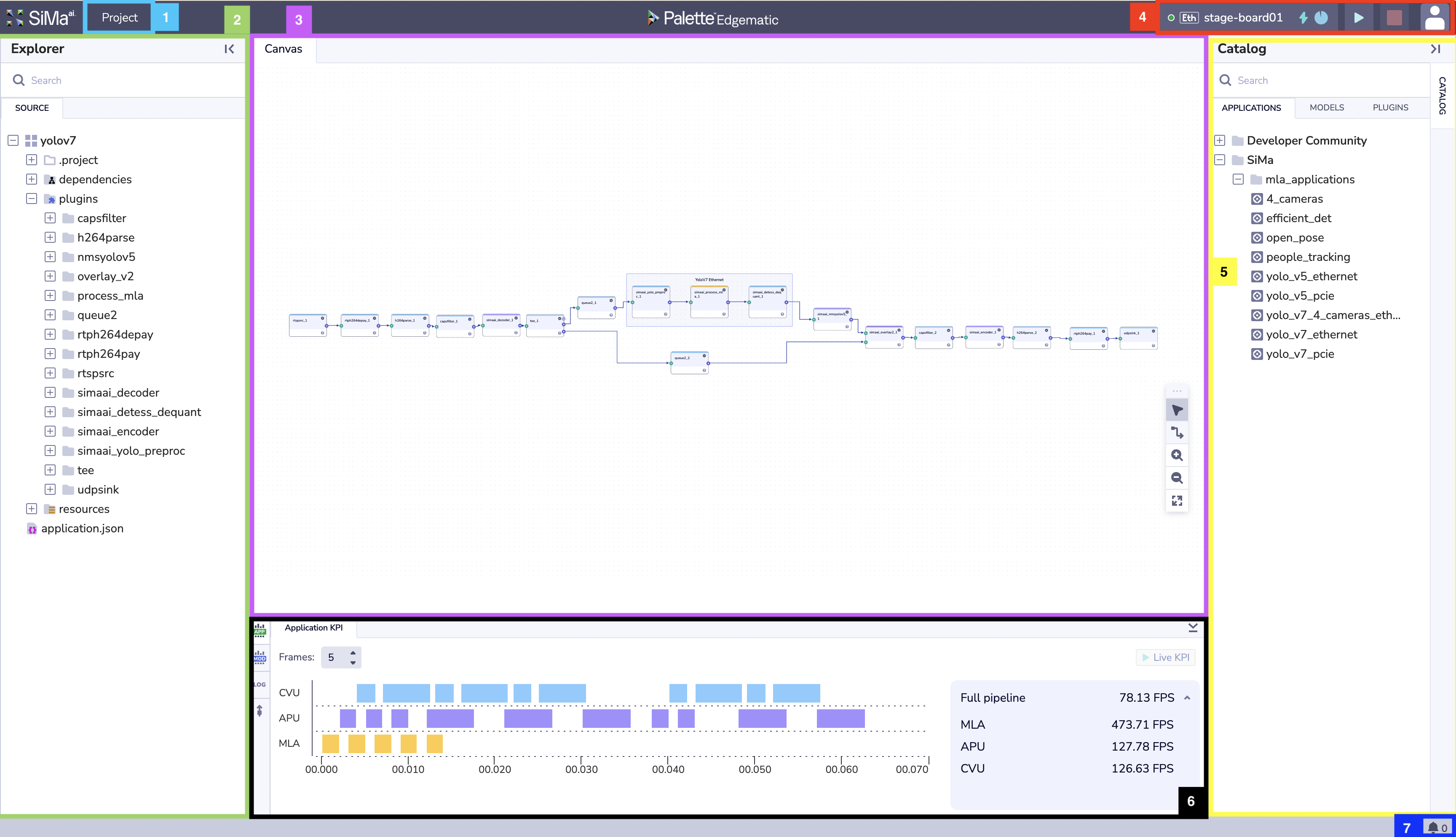 Edgematic is a cutting-edge UI-based development platform design for Edge AI applications. It empowers developers to streamline the creation and deployment of Edge AI applications with minimal coding requirements. Built on Palette, Edgematic provides a low/no-code environment to construct and evaluate optimized pipelines. It uses GStreamer alongside SiMa’s engine for model quantization, compilation, and deployment, making it an essential tool for accelerating Edge AI workflows.