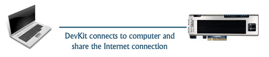 Plug the DevKit into the Ethernet port of the developerâs computer, use a USB-to-Ethernet dongle if developerâs computer doesnât have an ethernet port available.