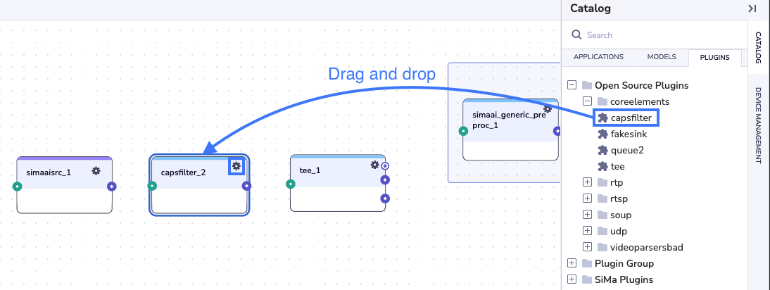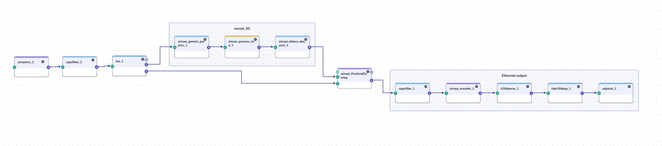 To visualize the pipeline output, we need an output plugin. The quickest option in Edgematic is to use the Ethernet Output complex group. This group of plugins, when added together, provides a rapid way to see the final processed frames or data.